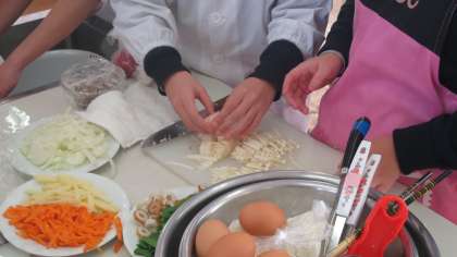 5年生全員で「身近な国を知ろう」の学習の一環として、韓国・朝鮮の食文化にふれる体験をしました。そうです、チヂミとトックづくりです。子どもたちはしっかりと事前にレシピについて調べたり、日本のお好み焼きやお雑煮とどこが似ていて、どこが違うのか考えたりしながら調理実習に取り組みました。