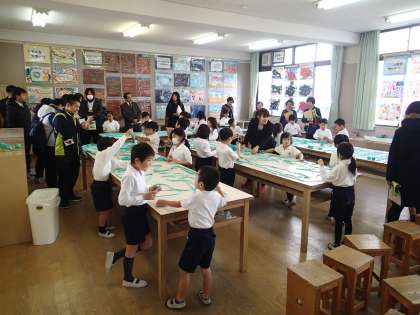 本日、大道南小学校で大阪市小学校教育研究会総合研究発表会が開催されました。これは大阪市の研究部や発表校の取り組みを各教科・領域等において公開授業や研究成果を発表する場です。本校は図画工作科の発表校となりました。大阪市各地の小学校からたくさんの先生方(およそ400人で講堂は大盛況でした)が大道南小学校の子どもたちの頑張りを見に来られました。子どもたちは緊張しながらも熱心に活動したり発表したりしていました。「とてもよく頑張っていたね」とたくさんの先生にほめていただきました。