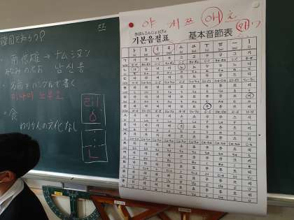 次に韓国文字の(ハングル)の勉強をして自分の名前をハングルで書きました。なかなか難しそうでしたが楽しく書けました。