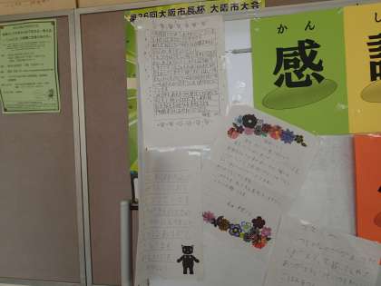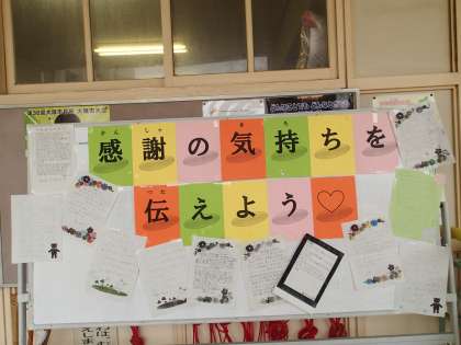 その中の一部を職員室前に貼っています。いろいろな人に対する感謝の気持ちが表してありました。