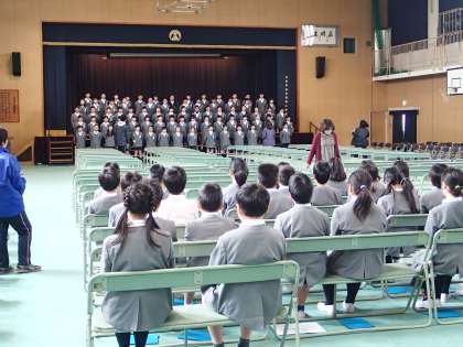 卒業式を来週に控え、今日は5・6年生の合同練習でした。