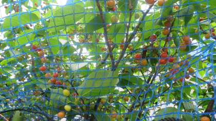 学習園の隅に「さくらんぼ」の木があります。毎年、なかなかおいしいという評判です。今年も色づき始めました。まだまだ黄色いものもありますが、これから赤く染まっていくと思います。鳥なども大道南のさくらんぼがおいしいことをよく知っていて狙っています。だから網で囲って防いでいます。でもいくつかはやっぱりやられてしまいます。残念…。