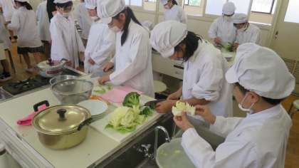 とにかく初めての調理実習なので、安全にそして適切に調理器具を使うことを心がけました。みんな楽しそうに活動しているのがとても微笑ましかったです。