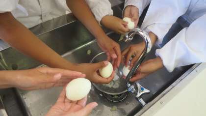 たまごはやっぱり自分の分は自分でむくんですね。自然とそういうことになるみたいです。