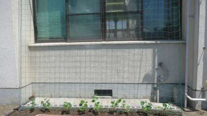 今年も「緑のカ−テン」に取り組みます。正門入ってすぐ横の校舎のごく一部なのですが、今年はヘチマを植えました。緑のカ−テンは直射日光を遮って夏を涼しく過ごすことができます。そして地球温暖化・ヒ−トアイランド対策にも期待できます。また成長のようすをアップします。まだ植えたてですので…。