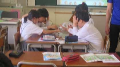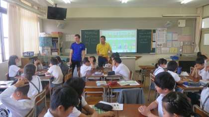 「When is your birthday?」の問いに「○月!」と英語で答えるのですが単語はばっちりなんですが、なかなか文章では難しいです。めっちゃ楽しそうなんですけどね。ネイティブの先生と担任の先生のかけ合いもなかなか様になっています。