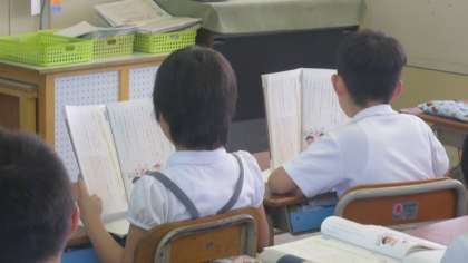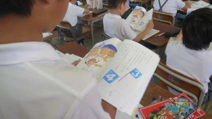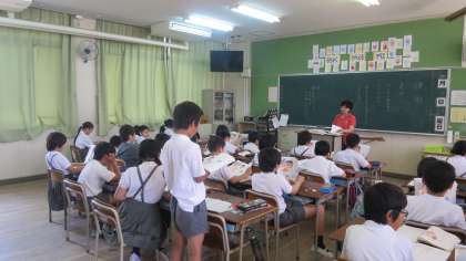 4年生が国語の時間に物語を学習していました。のぞいたときはちょうど音読をしているところでした。一人一人大きな声でていねいに読んでいます。また聞いている子もしっかりと教科書を手に持って非常に姿勢がいいです。落ち着いた雰囲気の中で授業が行われていました。