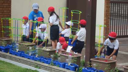 みんな自分のアサガオが少しずつ育っていくのを見て、本当にうれしそうな顔をしています。アサガオの成長に負けず、1年生も大きくなあれ!