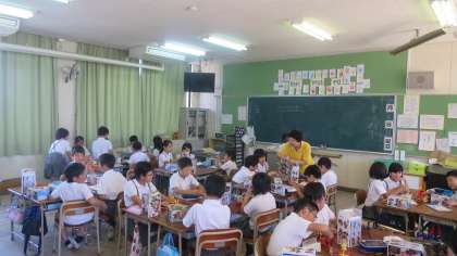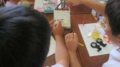 4年生が作った回路で「乾電池のはたらき」について調べていました。