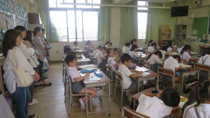 教室にもろうかにもたくさんのお家の人が来てくれて、はじめちょっと緊張気味でしたが、だんだん発表も増えてきましたよ。