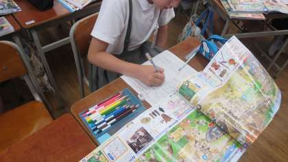 6年生が「歴史新聞」を作っていました。
