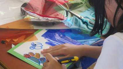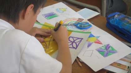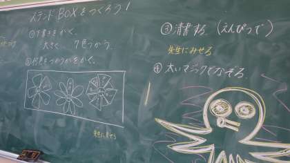 何やら4年生が図画工作の時間に「ステンドBOX」なるものをつくりはじめていました。キラキラしてる感じで華やかそうです。まだどんなものができるかわかりませんが、子どもたちは意欲的に設計図(?)を描いたりカラーセロハンを細かく切ったりして、想像力をふくらませながら活動していました。