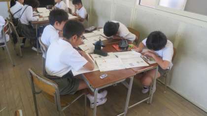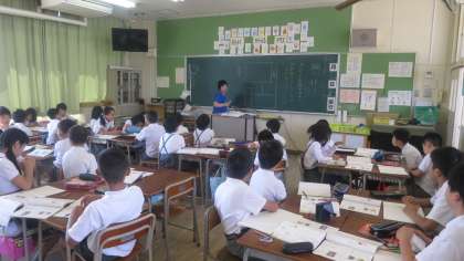 4年生が国語の授業で「新聞づくりの計画」について話し合っていました。まずはどんな記事をのせたらいいかについて発表していました。
