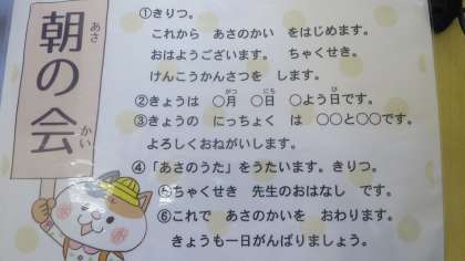 1年生なりに立派に朝の会をしているところがすごいと思いました。