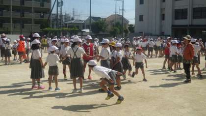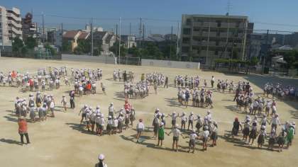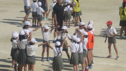 グループで手をつないで円を作り、そのまわりをねずみ役が逃げ回ります。それをねこ役が追いかけるというゲームです。ねずみはつかまりそうになったら、数秒間円の中に避難することができます。一見、ねずみに有利のように思えますが、レベルアップしてねこ役の人数が増えていくので、ねずみ役はかなり必死に逃げ回らないといけません。