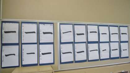 3年生の教室をのぞいてみると、毛筆習字が掲示してありました。