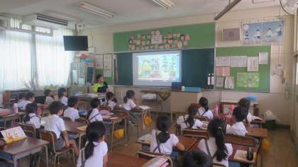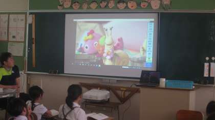 がんこちゃんを中心としたかわいい登場人物たちの人形劇なので、子どもたちは集中して見ていました。その後、先生の質問に答えたり、一緒に生活をふり返ったりしました。