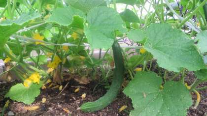 学習園のきゅうりが実りはじめました。まだ小さいものも多いのですが、スーパーで売っているくらいの大きさのものもちらほら見られます。これからどんどんできはじめていくと思います。みずみずしさを感じますね。