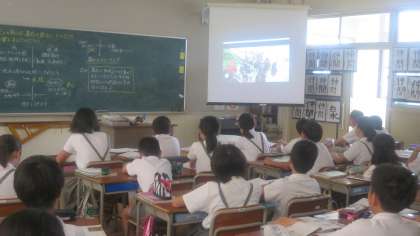 覚えることは多いですが、楽しんでいるようすがうかがえます。黒板の板書もさすが6年生、かなり難しそうですね。