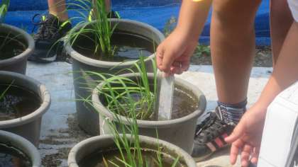 気温や水温、稲の生長のようす、長さなどを記録していました。