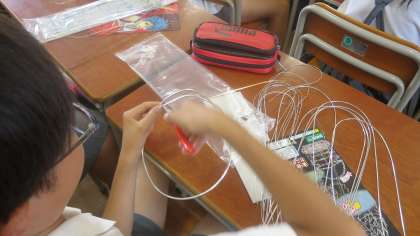 6年生が針金を切ったり曲げたり、ねじったりくっつけたりしながら自分だけの王冠を作るそうです。今日は初日なので、まずは自分の頭にのせるベースとなる部分を作っていました。ここからイメージを膨らませてどんどん飾っていきます。ペンチやその他の道具を効果的に活用しながら、ステキな王冠を作っていきます。また完成したら報告したいと思います。