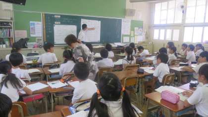 5年生が算数の授業でT・T指導(チーム・ティーチング)を取り入れていました。