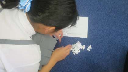ゲストティーチャーを迎え、6年生にストレスマネジメントの授業が行われました。ストレスマネジメントとは怒りのコントロールを上手に行い、イライラやうまくいかないときの心の使い方を学ぶことです。子どもたちは先生の話に耳を傾けてうなずいたり、進んで友だと意見交換したりしていました。イライラを抑える一つの方法として、「嫌なことや不安、イライラを紙に書いて小さくちぎってみる」というのを教えてもらいました。子どもたちも実際にやってみました。さて効果はどうだったのでしょうか。