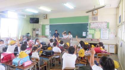 夏休みに向けて、地域こども会が行われました。夏休みのくらしや交通ルール、危険な場所や道路について話し合いました。6年生が中心となって進めていました。そのあと、集団下校を行い、集合場所まで担当の先生が送って行きました。交通事故や危険な目にあわないように、安全で安心な生活が送れるように、ご家庭でもご指導ください。