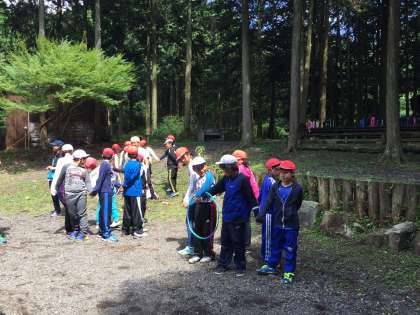 日差しが暑くなってきましたが、木陰は涼しい風が吹いていて涼しいです。イニシアチブゲームが始まりました。このゲームの目的は協力することです。どのグループも真剣です。さて、成功するでしょうか?