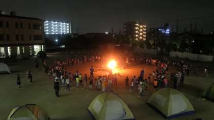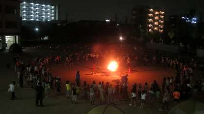 燃え上がる大きな火を囲んで、普段体験できない雰囲気に子どもたちも少し興奮気味でした。夏のよい思い出ができましたね。