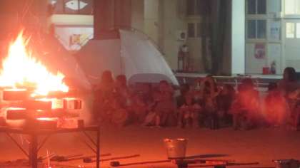 陽も沈み、楽しいひととき、キャンプファイヤーです。