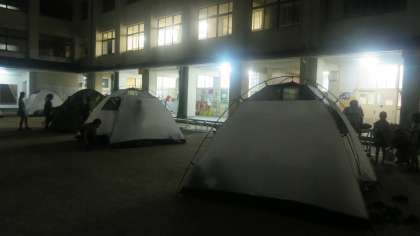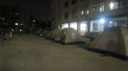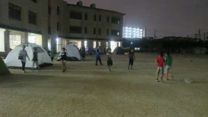 5〜6年生は自分たちが寝るテントを確認して就寝準備をしています。