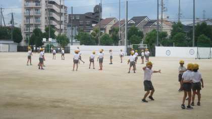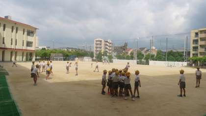 休み時間になると、さっそく運動場に出て遊んでいます。