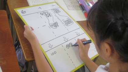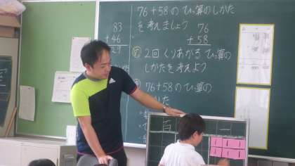 学校が年間を通して計画的に行っている授業研究会とは別に、少しでも子どもたちのためにわかりやすい授業をしようと、自主的に授業研修会を開いています。今日は2年生の算数の授業を参観し、放課後に授業の進め方や教材研究等について話し合います。