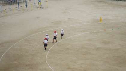 2年生が「かけっこ」の練習をしていました。まだ全力では走っていません。入場や退場の仕方、自分たちが走る順番やコースの確認をしていました。1年生のときよりも力強く走れるようになった姿が見られると思うと楽しみですね。