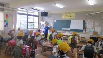 1年生が終わりの会で元気よく歌を歌っていました。歌のリズムも軽快で、歌詞も「今日も一日がんばった、楽しかったよ」「明日も元気にがんばるぞ」「くよくよしない」「やればなんでもできるんだ」みたいな…、そんな感じの歌だったような…、とにかくみんな笑顔で大きな声で歌っていました。そして最後にはみんなで、じゃんけんポン!!
