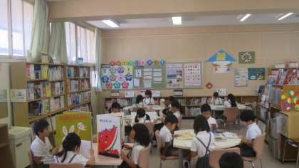 2年生が図書室を利用していました。みんな静かに本を選んだり読んだりしていました。どんな本を読んでいるのかなとのぞいてみたら、図かんや絵本などがほとんどなんですが、何人かは挿絵もない字だけの物語を読んでいる子もいて、びっくりしました。