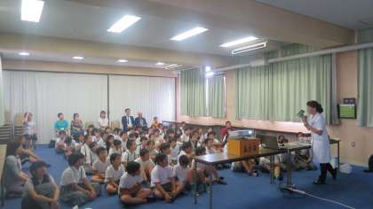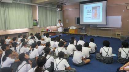 5時間目に6年生対象に「お薬講座」を開きました。薬剤師の先生に来ていただいて、薬の効能や副作用、正しい飲み方や危険について教えていただきました。子どもたちも活発に意見を発表したり、真面目な表情で先生の話に耳を傾けたりしていました。子どもたちも意外に薬を飲むことが多いことがわかりました。今回は学校保健委員会として開催し、保護者の方も参加してくれました。