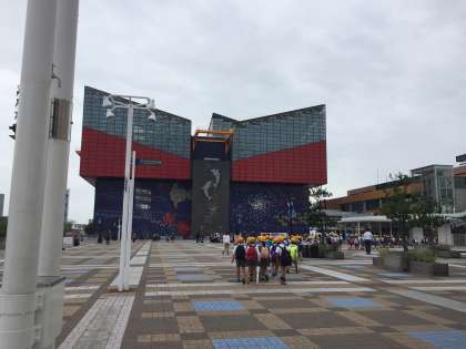 10月6日に3.4年は海遊館に行きました。お天気は朝は曇りでした。これから中に入ってグループごとに見学します。
