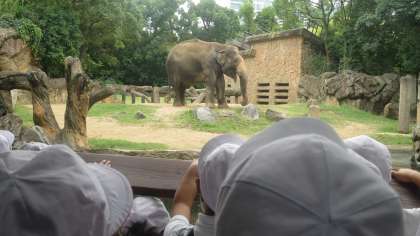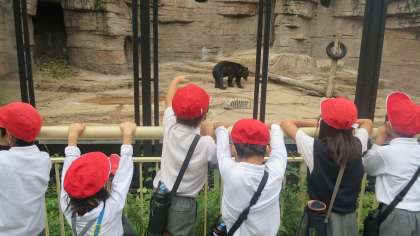 園内は大変混雑していましたが、動物たちをしっかりと見学することができました。トラがのそりのそり歩くだけで歓声が起こります。「かっこいいーっ!」「こっち向いてーっ!」「こっち来てーっ!」…、まるでアイドルのようでした。でも冷静な子が「こっち来たらこわいしきけんやろ」とボソッと一言。