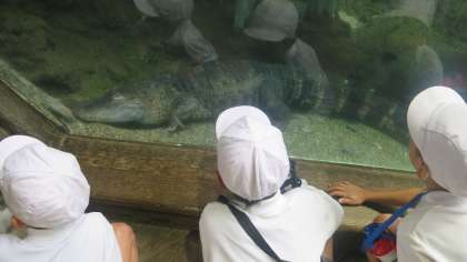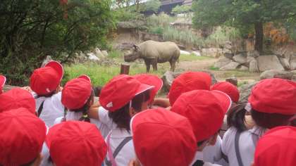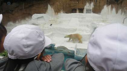 他にもたくさんの動物を見ました。みんなのぞき込むようにして見ていました。「ワニがいたでー」「シロクマがいたでー」…、先に見た子が毎回大声で教えてくれます。子どもたちに何がよかったか聞いてみると、サイとカバが人気でした。理由は「おしりがおおきかったあー」さてさて、みんなお目当ての動物は見れたでしょうか。またお家でもお話を聞いてあげてくださいね。
