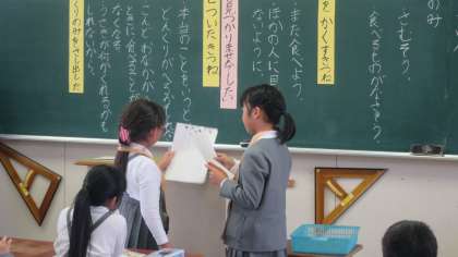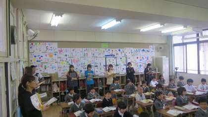 本日2時間目に2年生において研究授業が行われました。道徳で「くりのみ」という題材を使用して、子どもたちの心に問いかけていました。ウソをついたキツネが正直で心やさしいウサギに申し訳なく思い涙を流すという内容なのですが、二人組になってそれぞれの役を演技し、どのような気持でなったか迫りました。子どもたちは思い思いの意見を発表し、感じたことを素直に表現していました。しっかりと内容を読み取ることができ交流し合うことで、また一つやさしい心が身についたと思います。