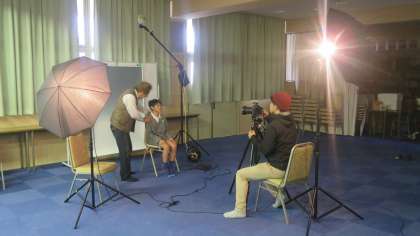 6年生が順番に多目的室に呼ばれて、卒業アルバムの個人撮影をしていました。どの子も少し緊張気味です。カメラマンが「はい、ニコッと笑って」「肩の力ぬいて」というのですが、みんな顔が引きつっています。それでも何とか気持ちをほぐしながら、何枚かカシャッカシャッと…。「ハイ、オッケー!」とオッケーサインが出ると「ふう〜」と一息。ほどよい緊張感の中で進められていました。確かにこの撮影セットの雰囲気の中ではそうなりますよね。さてどんなアルバム写真になっているか楽しみですね。