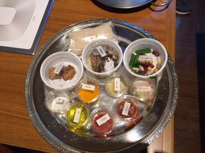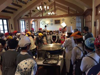 材料の確認をして、シェフによる実演を見てから、いよいよ各テーブルで作っていきます。さて、おいしくできるでしょうか?みんなお腹を見グウグウいわせながら、作っています。