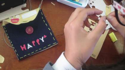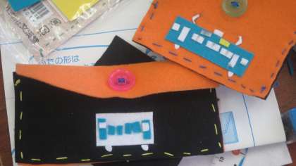 5年生が家庭科の授業で小物づくりをしていました。フェルトをカットして習った縫い方で縫い付けていきます。ボタン付けもできます。見まわしてみると、さいふやペンケース、ティッシュ入れなどが多かったように思います。手慣れた子もいれば、針に糸を通すところからストップしている子もいて、いろいろですね、見ていてとても楽しかったです。
