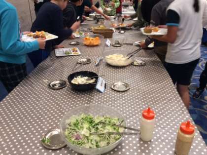 2日目の朝食もホテルのブッフェスタイルで、好きなものを選んで食べました。朝カレーもあります。朝からみんな元気で、食欲全開です。