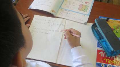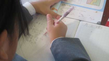 4年生が計算のきまりについて確認したり、工夫して計算したりする学習をしていました。「□にあてはまる数は何ですか?」先生の問いかけに、子どもたちは自信をもって手をあげていました。