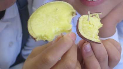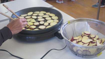 2年生が育ててきたさつまいもを収穫して、みんなでおいしく食べました。おいもさんの甘みが口の中に広がります。どの子の表情もいきいきとしていてうれしそうでした。