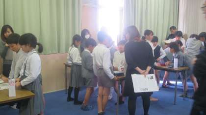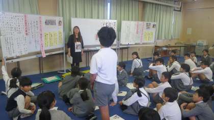 今日は5年生において研究授業がありました。大阪市教育委員会からも指導主事が来られて指導、助言をいただきました。授業内容は、道徳の授業で2人の指導者によるチーム・ティーチングの形式で行われました。子どもたちは2グループに分かれて、それぞれの登場人物の揺れ動く気持ちを探っていきます。そして感じたことや思ったことを発表し交流していました。一人で考えたり、グループで考えたり、みんなで考えたり…、授業形態も非常に工夫されていました。みんなやさしい子に育ってほしいですね。