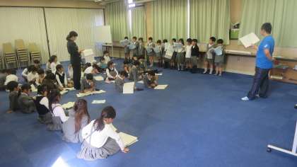 多目的室から元気で大きな声が聞こえてきました。1年生がわたされた台本を手にして、読み合わせをしていました。一人一人どんな役割なのでしょうか。まったくわかりませんが、素直に教えられたとおりにセリフを発表している姿がとてもかわいらしかったです。